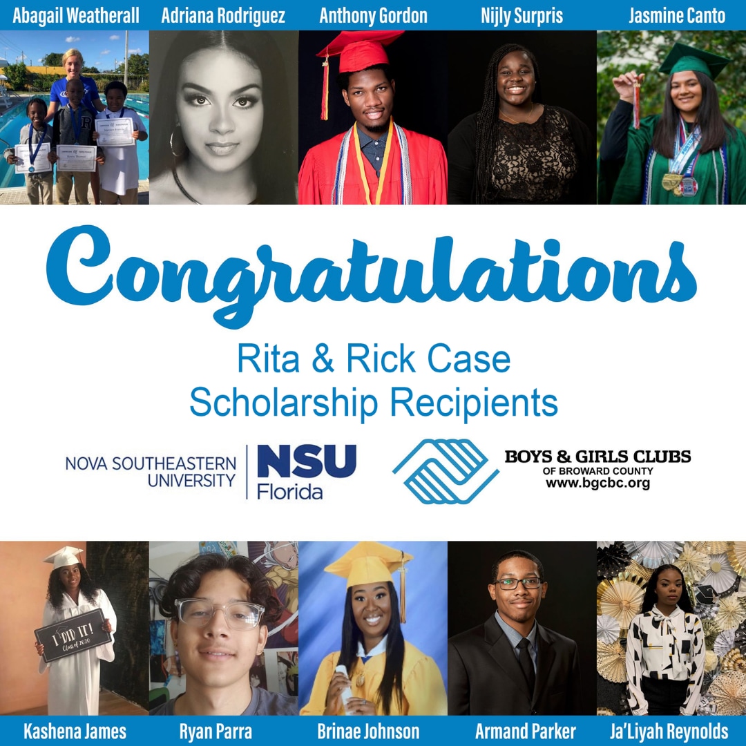 In their continued efforts to support the South Florida community, Rick and Rita Case have awarded four-year scholarships to NSU to 10 members of the Boys and Girls Club of Broward County!Â