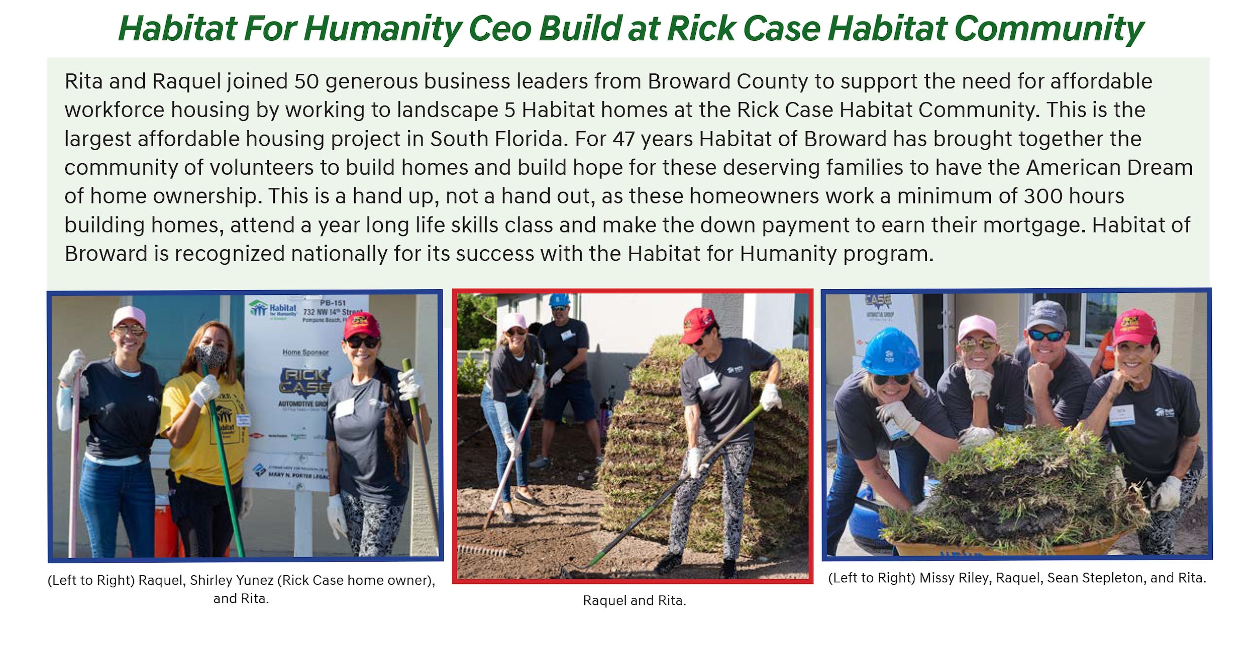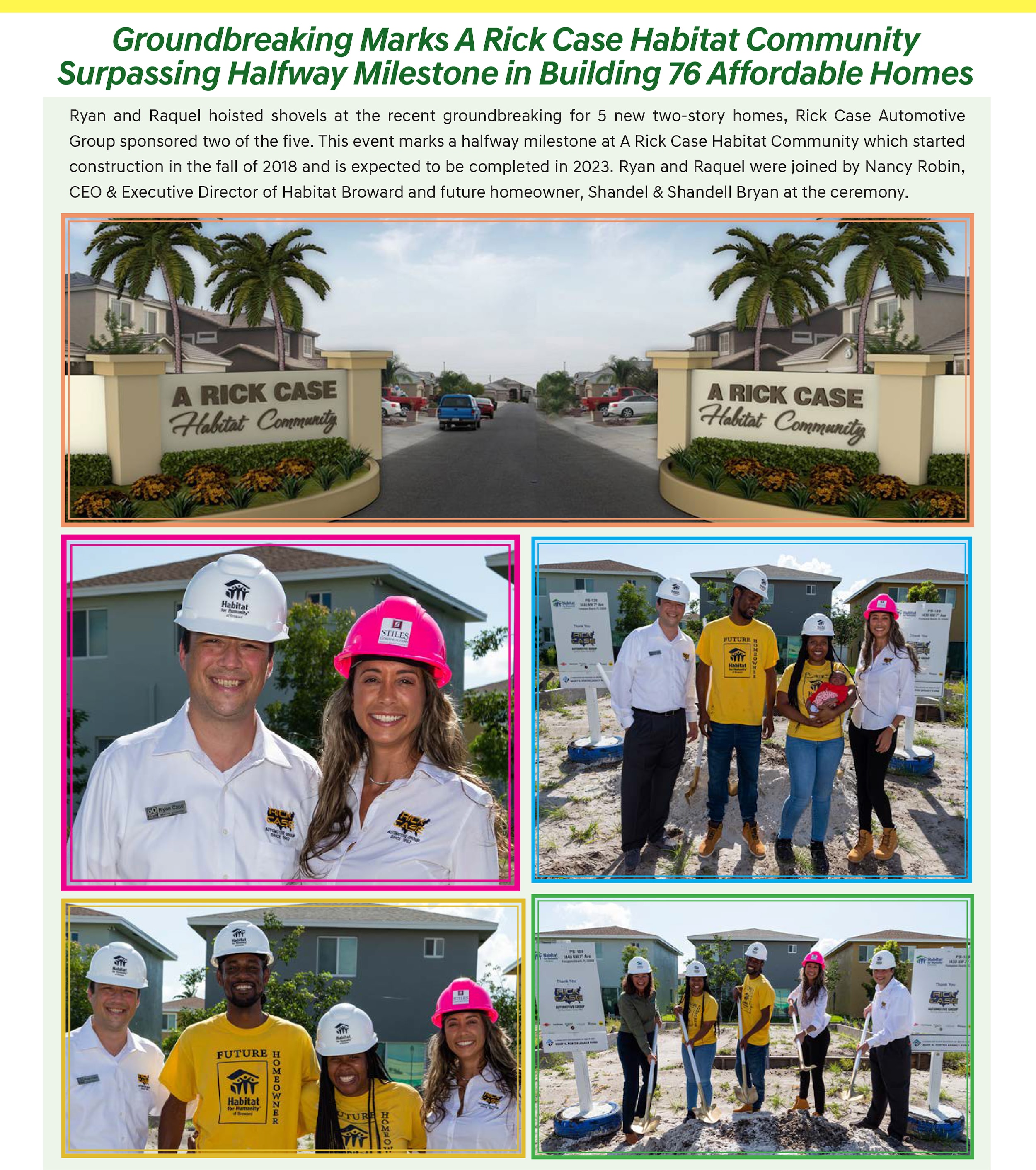 Habitat for Humanity of Broward is embarking upon the most ambitious project to date: A Rick Case Habitat Community (the Community). Once completed, seventy-six homes will sit atop nine acres in Pompano Beach, built with our partners and hard-working Broward families. This new community will transform the area into a vibrant, beautiful single-family home neighborhood. For more information or to donate to Habitat for Humanity, please go to https://www.habitatbroward.org/construction/a-case-for-community/